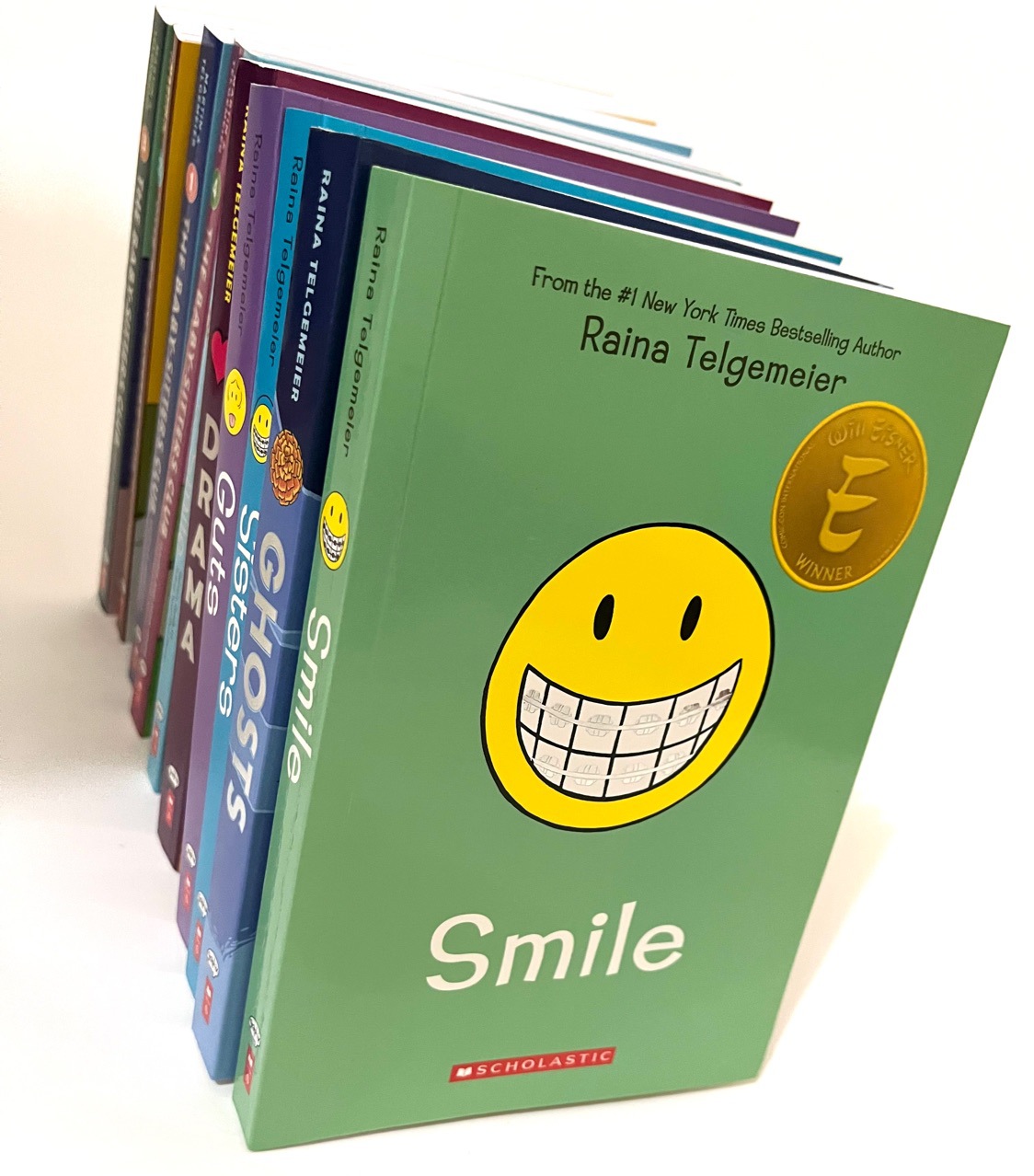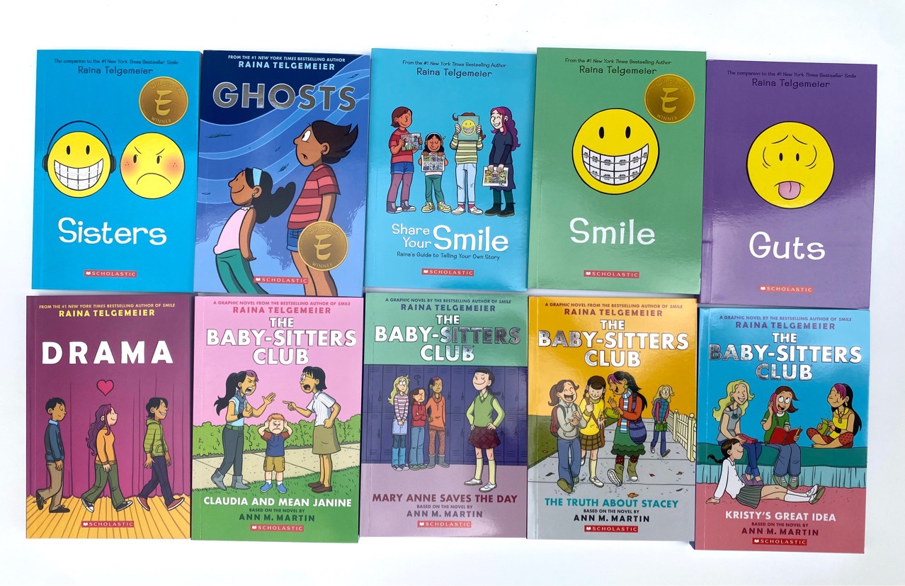 Raina Telgemeier’s New York Times bestseller, award-winning graphic novel about family, friendship, and the climaxes and troughs of growth.Smile The true story of her two front teeth being seriously injured when she was in sixth grade, and the dental drama that followed!